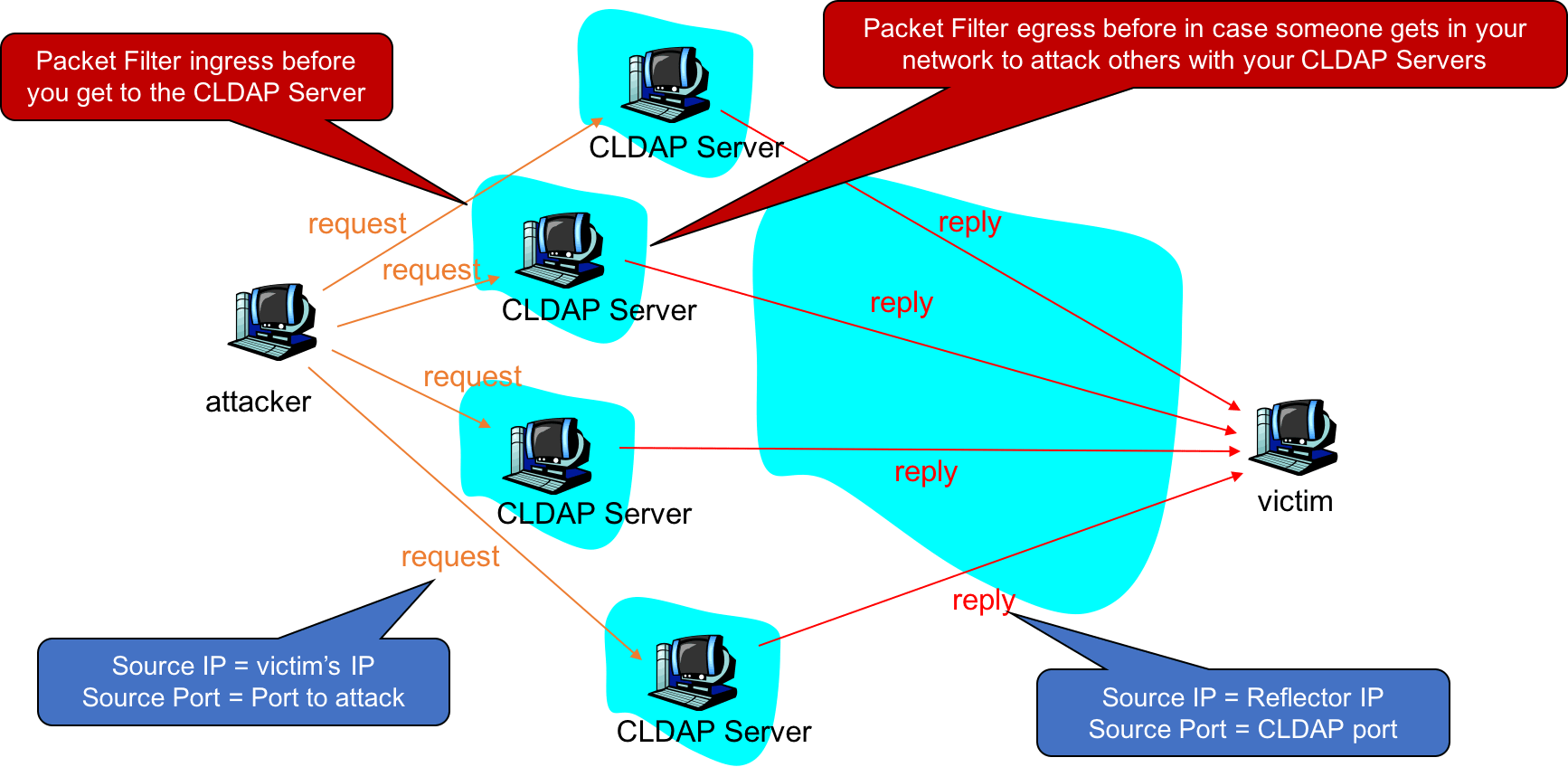 - Cloud Operator are allowing customers to create new instances with CLDAP open to the world, making each new instance a CLDAP DOS reflector with the power of the “cloud.”